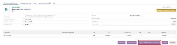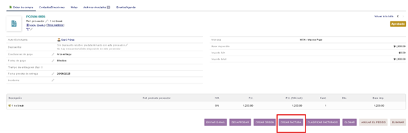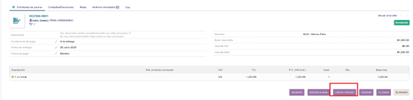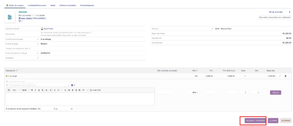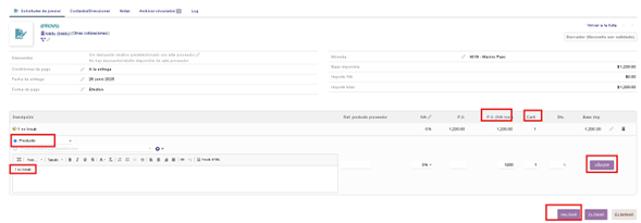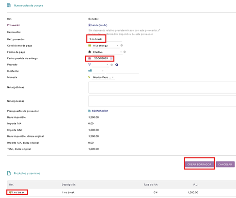 En el formulario del pedido llenamos la referencia del proveedor que coincidirá con la descripción.