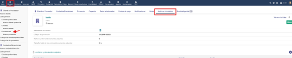 Ruta: Clientes /Cliente o proveedor / Proveedores /Nombre del tercero. / Pestaña archivo vinculados.